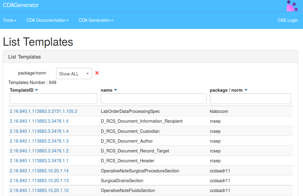 All the templates described and validated by CDAGenerator are documented by the tool.