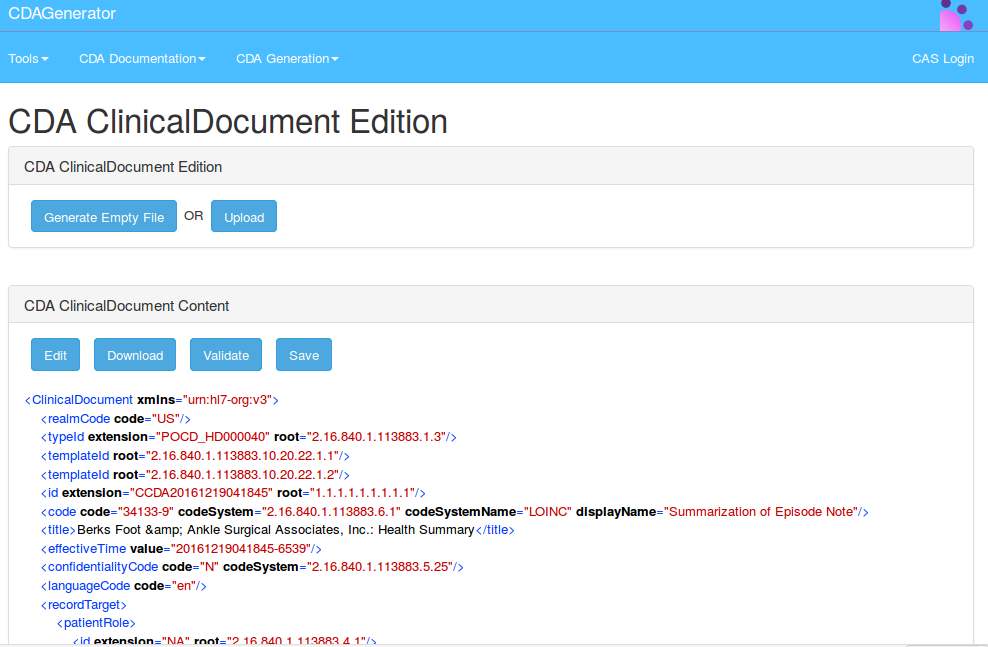 • Generation and Edition of basic CDA R2 documents