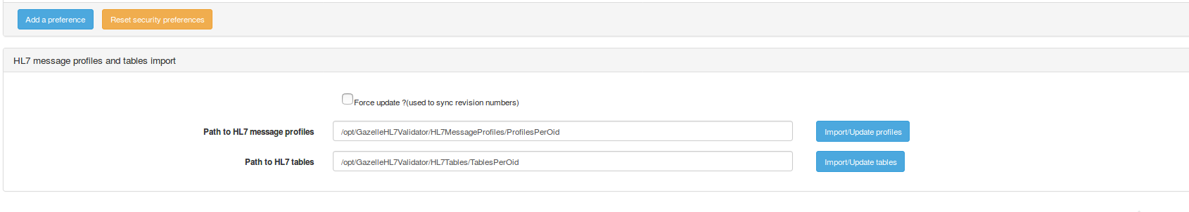 To update the conformance profiles, configure the “Path to HL7 tables” and click on the button