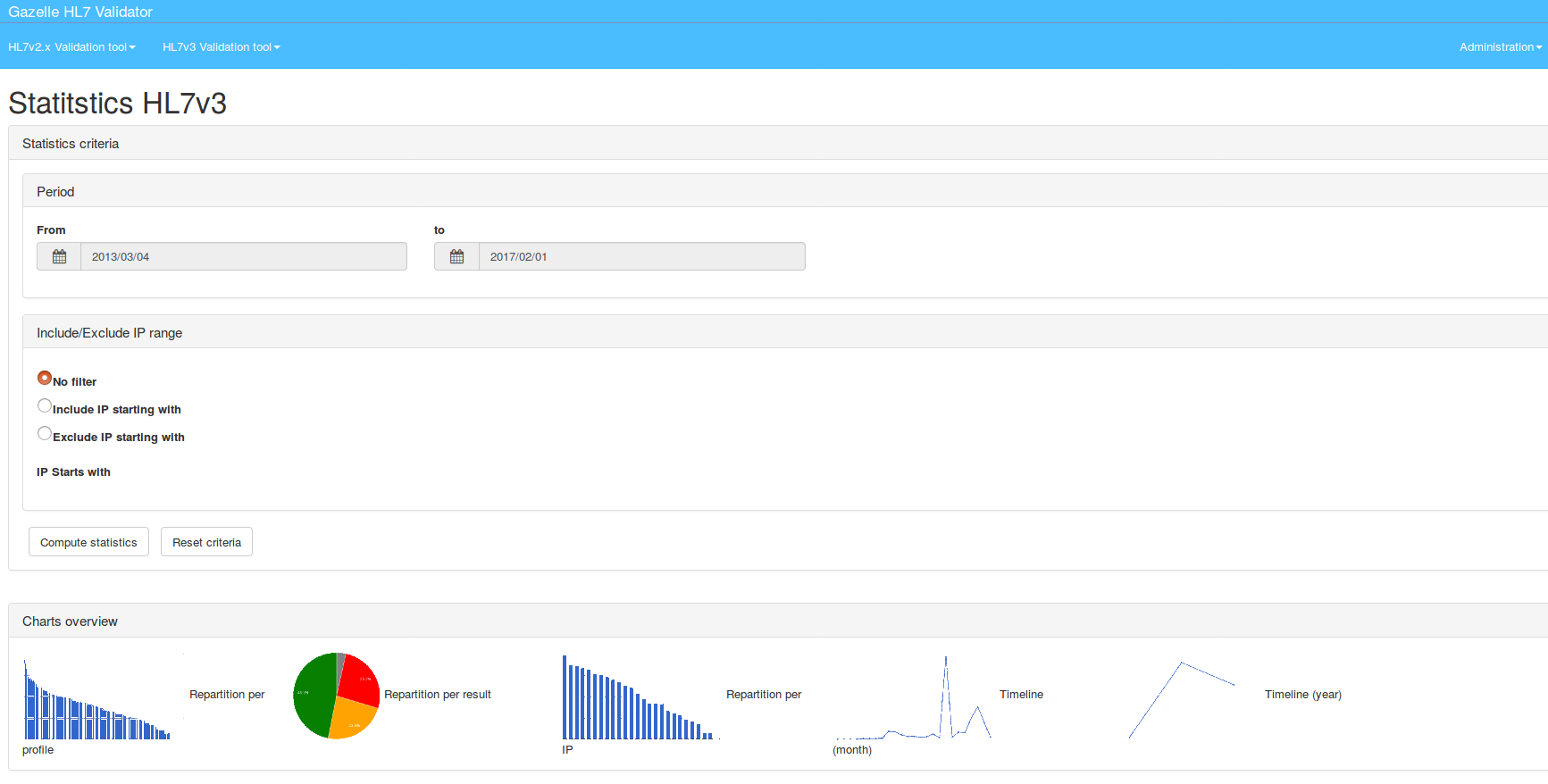 As shown on picture below, the User Interface provides two validation tools: HL7v2.x Validation tool and HL7v3 Validation tool: