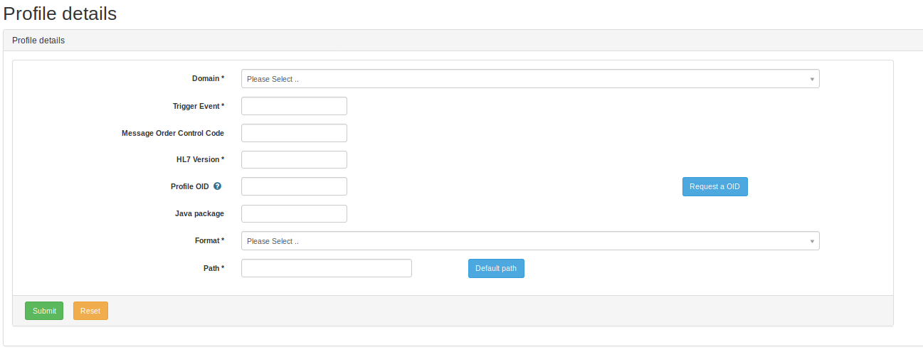 is available on the right of the “Profile OID” field. Clicking on this button will ask the application to automatically assign an OID to this conformance profile.