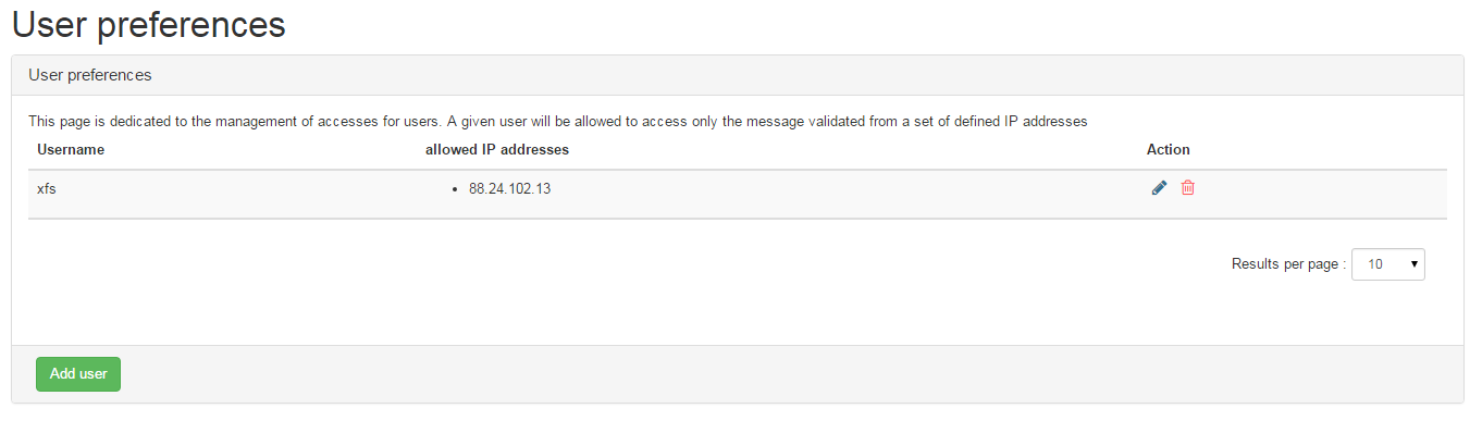 By adding an user, you can restrict the allowed IP addresses to constraint this user to see only the messages coming from this IP address.