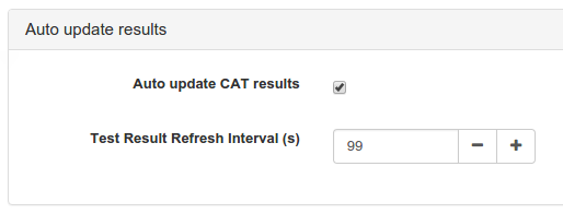 1. Auto update CAT results : this section shall be selected during testing session registration and execution, no need to it otherwise