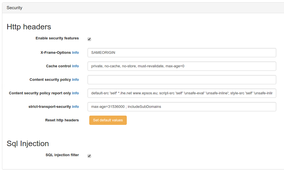 This section allows to describes the different HTTP security attributes related to gazelle.