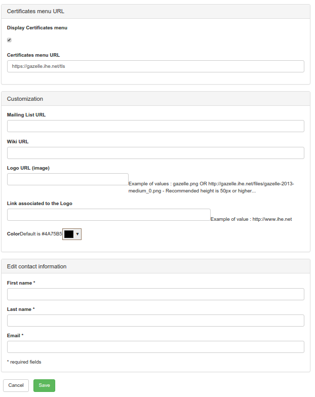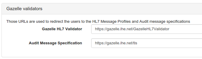 • Application URL: the URL to gazelle application (example: https://gazelle.ihe.net/EU-CAT/). This attribute is used to create permanent links into the application to the test plan, test instances, etc.