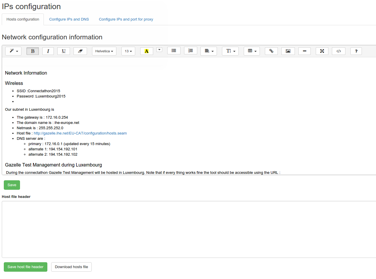 Example of home page for the IHE-Europe instance of Gazelle Test Management