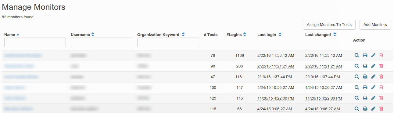 This page can be useful when you assign the test cases to the monitors since it automatically highlights: