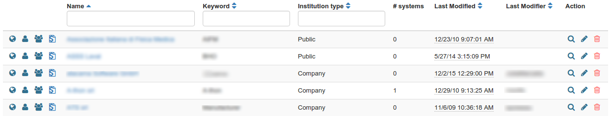 In the table, a line is displayed for each actor / integration profile / option (AIPO) tuple registered by a system; in Test Management, results are given at system level even if we usually communicate the results at company level.
